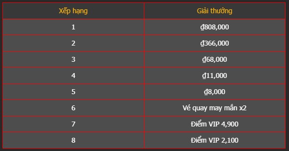– Tổng giá trị giải thưởng lên đến hàng triệu mỗi ngày.