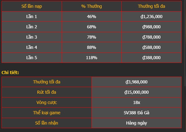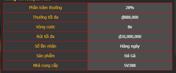 – Thưởng nạp lại hằng ngày tại sảnh đá gà SV388.