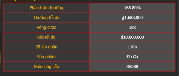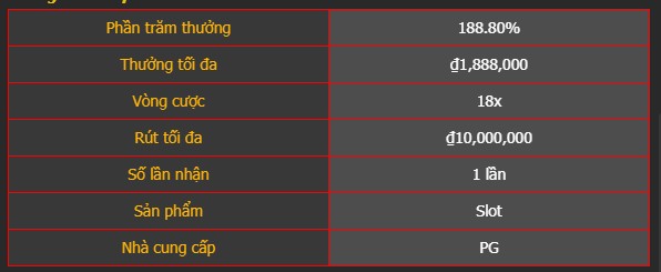 – Tỷ lệ thưởng lên đến 188.8%.