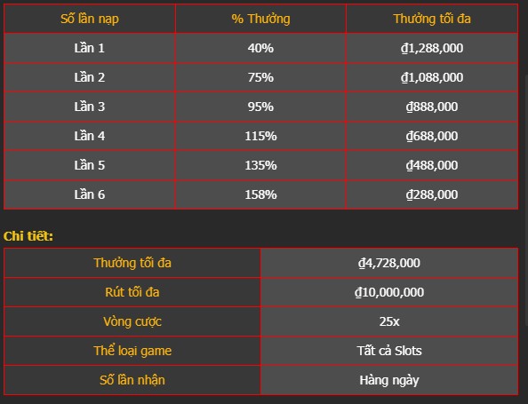 – Siêu thưởng nạp dành cho tất cả các sảnh Slot.