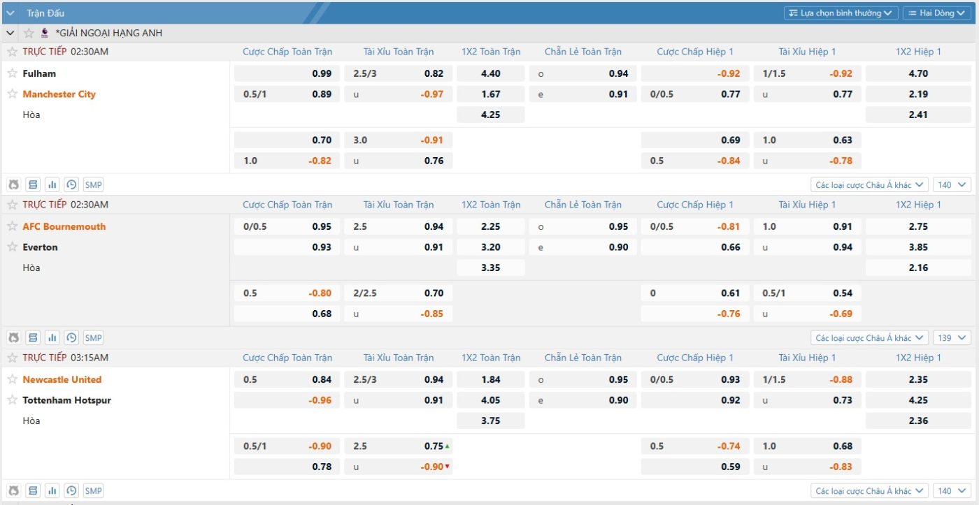 - Kèo đa dạng (chấp, tài xỉu, rung, tỷ số…)